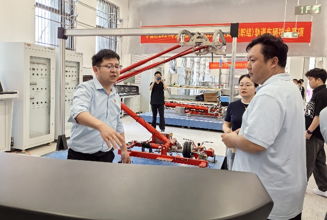 李志成對汽車制造黨支部全體黨員和教師的到來表示熱烈歡迎,并簡要介紹了該校的歷史沿革、辦學(xué)理念、開設(shè)專業(yè)以及未來的發(fā)展方向。他帶領(lǐng)大家參觀了該系的實(shí)訓(xùn)基地,介紹了該系的實(shí)訓(xùn)設(shè)備、實(shí)訓(xùn)開展、技能大賽參賽及就業(yè)情況,并希望通過此次黨建聯(lián)建活動,促進(jìn)雙方黨組織建設(shè)交流,提升黨建工作水平,為兩校的合作與發(fā)展提供堅(jiān)強(qiáng)的政治保障,從而進(jìn)一步加強(qiáng)高職一體化專業(yè)建設(shè)水平。