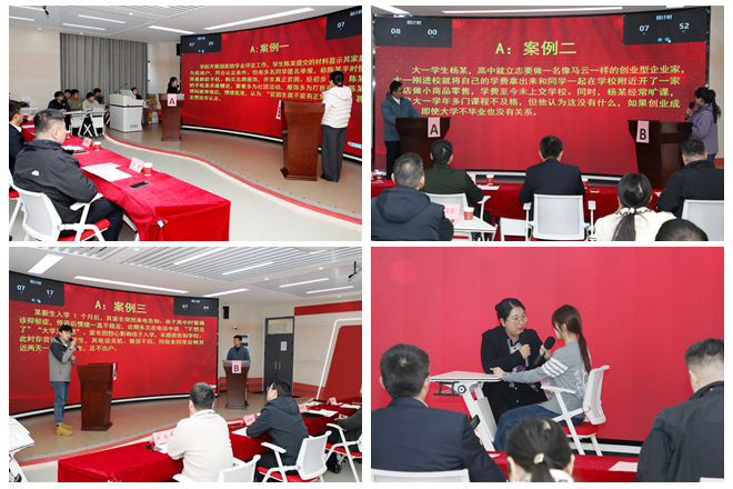 大賽設(shè)置“案例分析”“談心談話”兩大核心競技環(huán)節(jié),精準(zhǔn)考察輔導(dǎo)員職業(yè)核心能力。在“案例分析”環(huán)節(jié),選手通過“AB角隨機組合”分組,賽前10分鐘抽題備戰(zhàn),比賽中先由A隊作答、B隊提問,再互換角色,作答與提問分別占比80%和20%的評分規(guī)則,全方位考驗選手理論應(yīng)用與問題研判能力。參賽輔導(dǎo)員憑借扎實功底拆解學(xué)生工作難題,提出切實方案,提問環(huán)節(jié)更盡顯“真經(jīng)驗”與“真智慧”。隨后的“談心談話”環(huán)節(jié)模擬真實育人場景,5分鐘限時內(nèi),輔導(dǎo)員面對模擬學(xué)生的訴求與困惑,以耐心傾聽、專業(yè)疏導(dǎo)搭建溝通橋梁,既展現(xiàn)了對學(xué)生成長規(guī)律的深刻把握,也彰顯了臨場應(yīng)變的育人技巧。