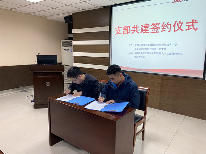 為深入貫徹落實黨的十九大和十九屆五中全會會議精神,積極探索組織聯(lián)建、黨員互動、活動互聯(lián)、工作互助、資源共享、經(jīng)驗共鑒、共同發(fā)展的有效途徑,創(chuàng)新黨建新模式,攜手共創(chuàng)先進基層黨支部。11月13日,學(xué)院第四黨支部與安徽江淮汽車集團股份有限公司技術(shù)中心整車試驗開發(fā)研究院第一黨支部舉辦了黨建共建簽約儀式。