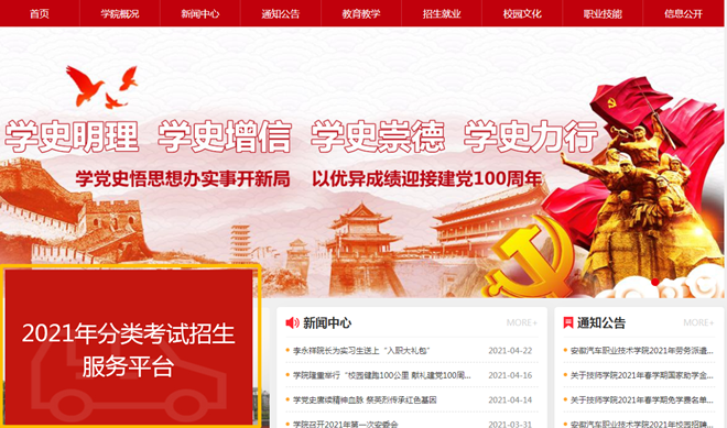 一、點(diǎn)擊進(jìn)入官網(wǎng)(http://www.jacedu.cn/),點(diǎn)擊飄窗“2021年分類考試招生服務(wù)平臺(tái)”。