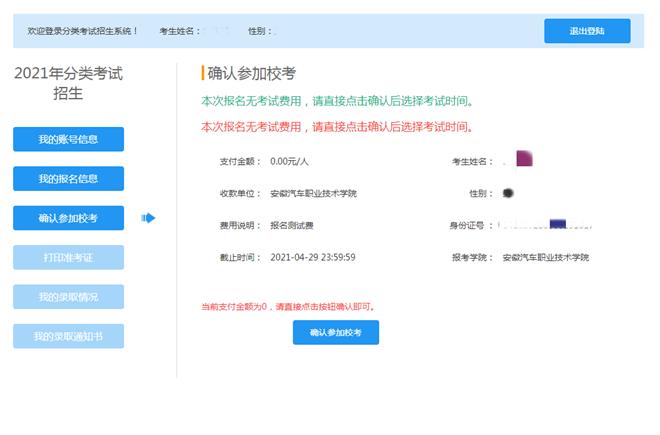 五、核對(duì)無(wú)誤,點(diǎn)擊“確認(rèn)參加??肌边M(jìn)入如下界面: