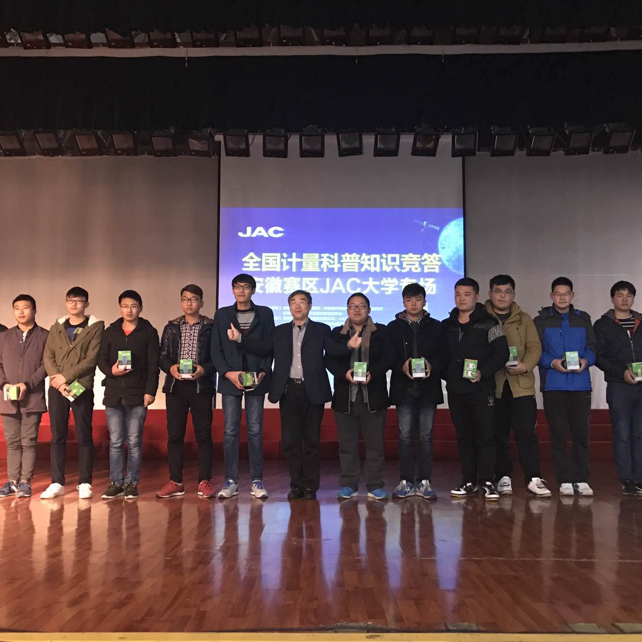 12月22日下午全國(guó)計(jì)量科普知識(shí)競(jìng)答安徽賽區(qū)JAC大學(xué)專(zhuān)場(chǎng)成功舉辦。此次比賽由由安徽省質(zhì)監(jiān)局、省科技協(xié)會(huì)、省教育廳、省科技廳、團(tuán)安徽省委主辦。由省計(jì)量科學(xué)研究院、省質(zhì)量技術(shù)協(xié)會(huì)、安徽商報(bào)社、安徽江淮計(jì)量科學(xué)研究院、JAC大學(xué)承辦。