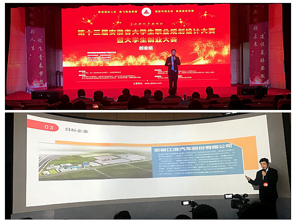 2018年11月底,以“規(guī)劃精彩人生,放飛青春夢(mèng)想;創(chuàng)新引領(lǐng)未來(lái),建設(shè)美好安徽”為主題的“蘇滁現(xiàn)代產(chǎn)業(yè)園杯”第十三屆安徽省大學(xué)生職業(yè)規(guī)劃設(shè)計(jì)大賽暨大學(xué)生創(chuàng)業(yè)大賽在合肥職業(yè)技術(shù)學(xué)院成功舉辦。來(lái)自安徽省40多所高校的40多名職業(yè)規(guī)劃組選手和40多支創(chuàng)業(yè)組團(tuán)隊(duì),分別在兩個(gè)賽場(chǎng)展開(kāi)了激烈角逐。安徽汽車職業(yè)技術(shù)學(xué)院汽車營(yíng)銷與服務(wù)專業(yè)的陳景然《汽車營(yíng)銷專家職業(yè)規(guī)劃》和汽車維修技術(shù)專業(yè)的吳樂(lè)宇《零元學(xué)技能》的創(chuàng)業(yè)團(tuán)隊(duì)分別代表學(xué)校參加了此次的職業(yè)規(guī)劃組與創(chuàng)業(yè)組的比賽。