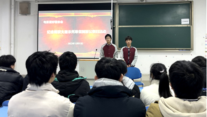 12月13日是第十個南京大屠殺死難者國家公祭日。為了讓青年人牢記國恥,自立自強(qiáng),奮發(fā)有為,當(dāng)天,電影愛好者協(xié)會舉行活動,悼念南京大屠殺的死難者。