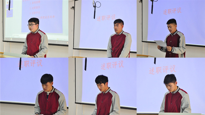 首先,由上屆學生會主席及各部門負責人進行述職報告。各部門對上一年工作進行了總結,不回避部內現(xiàn)有的問題并且有條不紊地展示了本部門新學期的工作計劃,成功地彰顯了我院學生會的風采。在述職報告后,現(xiàn)場完成了述職報告民主評議。