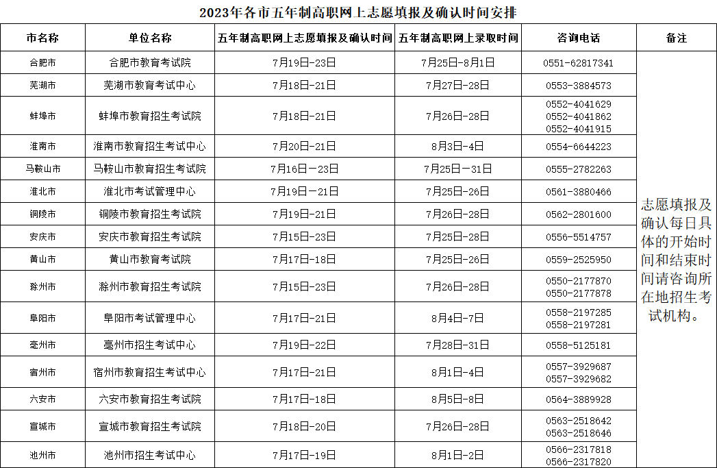 2023年各市五年制高職網(wǎng)上志愿填報及確認(rèn)時間安排