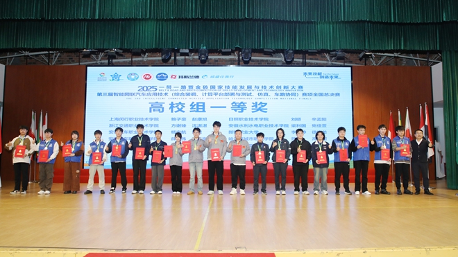 11月9日,2025 一帶一路暨金磚國家技能發(fā)展與技術(shù)創(chuàng)新大賽第三屆智能網(wǎng)聯(lián)汽車應(yīng)用技術(shù)賽項全國總決賽在我校落下帷幕。學(xué)校師生代表隊?wèi){借過硬的專業(yè)技能與出色的團隊協(xié)作,在全國290支參賽隊伍的激烈比拼中脫穎而出,一舉拿下高校組一等獎2項、職工組一等獎2項,中職組二等獎1項、三等獎1項;學(xué)校榮獲 “突出貢獻獎”,彰顯了我校在智能網(wǎng)聯(lián)汽車技術(shù)人才培養(yǎng)領(lǐng)域的辦學(xué)實力。