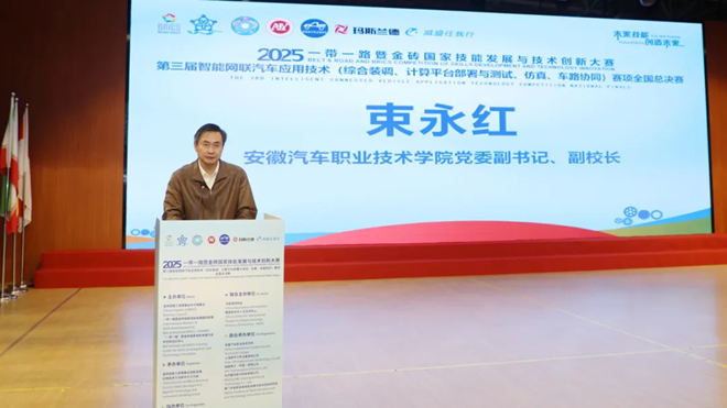 安徽汽車職業(yè)技術(shù)學(xué)院黨委副書記、副校長束永紅在致辭中表示,本次大賽是推動智能網(wǎng)聯(lián)汽車技術(shù)人才培養(yǎng)與產(chǎn)業(yè)融合發(fā)展的生動實踐。大賽雖將落幕,但技能發(fā)展的腳步永不停歇。希望全體選手以此次大賽為新的起點,把比賽中激發(fā)出的拼搏精神、創(chuàng)新意識和團隊協(xié)作能力,帶回課堂、帶回崗位,轉(zhuǎn)化為推動技術(shù)進(jìn)步、服務(wù)產(chǎn)業(yè)升級的強大動力。我校也將持續(xù)深化產(chǎn)教融合、校企合作,優(yōu)化專業(yè)結(jié)構(gòu),提升人才培養(yǎng)質(zhì)量,努力打造智能網(wǎng)聯(lián)汽車領(lǐng)域高素質(zhì)技術(shù)技能人才的高地,為安徽省乃至全國汽車產(chǎn)業(yè)的發(fā)展貢獻(xiàn)更多安汽院力量。