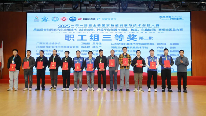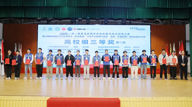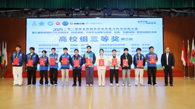 逐夢賽場展絕技,拼搏奮進(jìn)綻榮耀。11月9日晚,為期3天的2025一帶一路暨金磚國家技能發(fā)展與技術(shù)創(chuàng)新大賽第三屆智能網(wǎng)聯(lián)汽車應(yīng)用技術(shù)(綜合裝調(diào)、計算平臺部署與測試、仿真、車路協(xié)同)賽項全國總決賽,在安徽汽車職業(yè)技術(shù)學(xué)院落下帷幕。