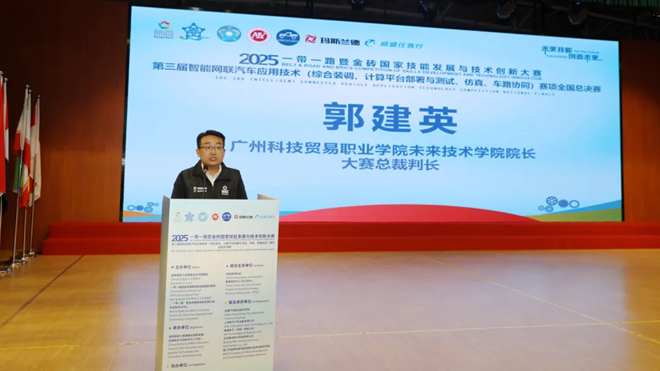 廣州科技貿(mào)易職業(yè)學(xué)院未來技術(shù)學(xué)院院長、毛明院士工作站智能網(wǎng)聯(lián)汽車項目總監(jiān)、大賽總裁判長郭建英對本次大賽進(jìn)行點評。他充分肯定了選手們的表現(xiàn),認(rèn)為選手在比賽中呈現(xiàn)出“技能應(yīng)用愈發(fā)扎實、模塊的銜接效率提升、創(chuàng)新實踐初見成效”三大亮點。同時,他也客觀指出了存在的不足,希望各參賽院校及企業(yè)主動對接金磚國家技能標(biāo)準(zhǔn)與行業(yè)技術(shù)前線的需求;希望選手總結(jié)經(jīng)驗、正視不足;希望全體行業(yè)職工、職教工作者持續(xù)關(guān)注全球的產(chǎn)業(yè)技術(shù)動態(tài),期待大家在技能提升與創(chuàng)新的探索的道路上再創(chuàng)佳績。