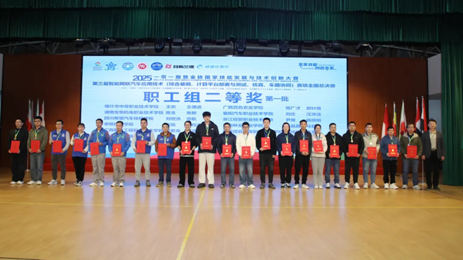 回顧3天的比拼,來自全國各高校、中職、企業(yè)的290個代表隊的580名參賽選手,圍繞綜合裝調(diào)、計算平臺部署與測試、仿真、車路協(xié)同四大模塊,沉著應(yīng)戰(zhàn)、冷靜發(fā)揮,憑借扎實的理論基礎(chǔ)和熟練的操作技能,展現(xiàn)了新時代技術(shù)技能人才的專業(yè)素養(yǎng),也凸顯了團隊協(xié)作的重要性。最終,大賽在中職組、高校組、職工組分別評選出一、二、三等獎若干名,與會領(lǐng)導(dǎo)和嘉賓現(xiàn)場為獲獎選手頒獎,見證榮耀時刻。