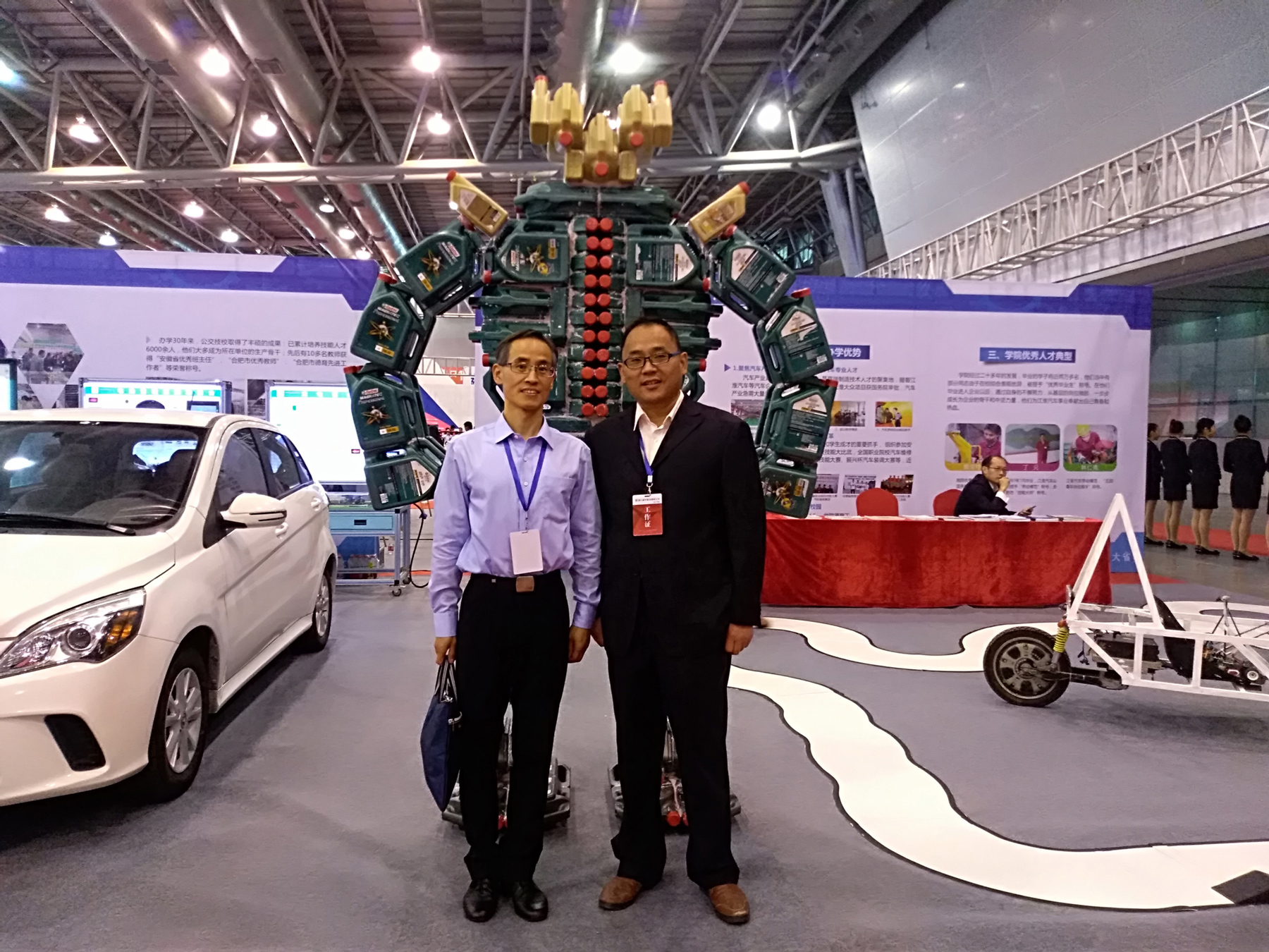 我校的學(xué)子們也在技工節(jié)上展現(xiàn)了各項(xiàng)技能,特別是在二號展廳身高有兩米六 的“機(jī)器人”,引起了大家的強(qiáng)烈關(guān)注。這個驚艷四座、讓大家駐足觀看的超大機(jī)器人,是由我校左迎春汽車維修技能大師帶領(lǐng)工作室維修班的學(xué)子們用廢舊的機(jī)油桶精心打造而成。合肥市人社局職業(yè)能力建設(shè)處處長束志偉連連稱贊道:這個機(jī)器人彰顯了創(chuàng)造性,在變廢為寶的同時也鍛煉了學(xué)生的動手能力,是手藝也是藝術(shù),為我校技工學(xué)子們點(diǎn)贊!