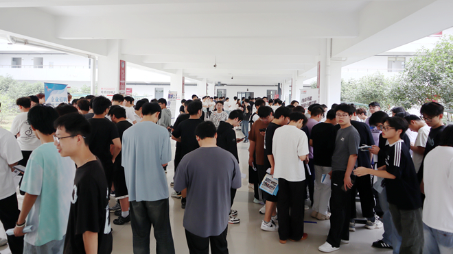 當(dāng)天,學(xué)校教學(xué)樓一樓長(zhǎng)廊各大企業(yè)招聘臺(tái)前擠滿了求職學(xué)生,新一輪針對(duì)我校2025屆畢業(yè)生和提前“鎖定”我校2026屆畢業(yè)生的“選才搶人”大戰(zhàn)就此熱烈開(kāi)啟。