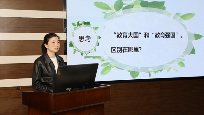 會上,教務(wù)處副處長、思政教研室主任王文君圍繞“如何打磨一堂優(yōu)質(zhì)的思政課”為主題,匯報(bào)了《形勢與政策》課程備課的總體情況。各思政教師通過專題說課、集體磨課的形式,從教學(xué)內(nèi)容、教學(xué)手段、教學(xué)重難點(diǎn)以及我校專業(yè)發(fā)展等方面對如何講好“從教育大國邁向教育強(qiáng)國”這一專題逐一研討發(fā)言。