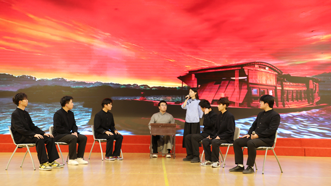 大會現(xiàn)場,來自新發(fā)展黨員教師、入黨積極分子培訓班學員、各班級、各社團等代表分別演出了情景歌曲《給父親的一封信》、情景劇朗誦《穿越時空的對話》、藝術(shù)黨課《紅船初心》、大合唱《我們走在大路上》,表達對中國共產(chǎn)黨的真摯熱愛。