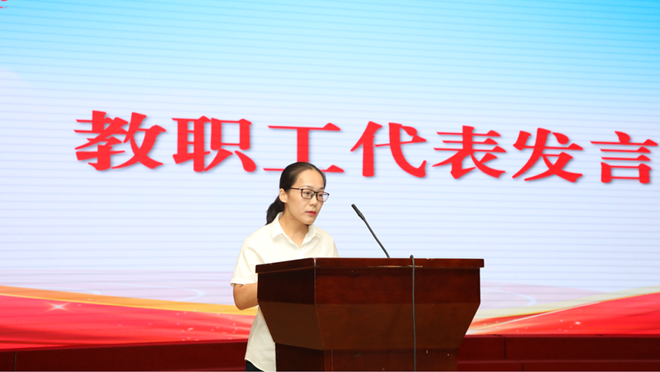 學(xué)校2024-2025學(xué)年優(yōu)秀教師代表李文定、“服務(wù)標(biāo)兵”代表單萍、優(yōu)秀輔導(dǎo)員代表陳宇欣依次發(fā)言。他們結(jié)合工作崗位分享經(jīng)驗(yàn)與感悟:將以教育家精神為引領(lǐng),既做學(xué)生技能的傳授者,更做成長(zhǎng)的引路人,同時(shí)做好師生服務(wù)工作。三位代表的發(fā)言真摯懇切,充分展現(xiàn)了安汽院教職員工愛崗敬業(yè)、深耕職業(yè)教育的責(zé)任與擔(dān)當(dāng)。